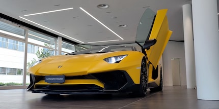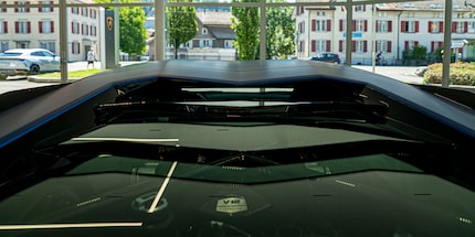 Dazu das Dach des Aventador Roadsters beim Shooting bei Lamborghini St. Gallen, der wie ein flaches, umgedrehtes W aussieht.