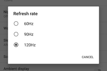 Die 120 Hertz Taktfrequenz müssen eingestellt werdenAber: Die 120 Hertz sind nicht von Werk aus eingestellt. Wenn du den vollen Bildschirmgenuss haben willst, dann musst du das unter Settings → Display → Refresh Rate tun. Netterweise ist die Bildschirmauflösung standardmässig auf das Maximum gesetzt, also 2560×1440 Pixel.