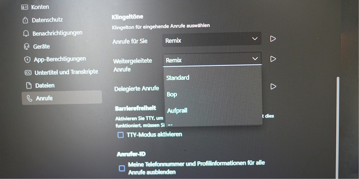 Wem auch der Remix nicht genug ist, findet in den Teams-Einstellungen weitere Klingeltöne – und ich fühle mich wie vor zehn Jahren, wo wir uns noch Klingeltöne zusandten und dabei aus Versehen irgendwelche überrissene, halbschmuddelige Jamba-Abos abschlossen.