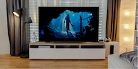 Abseits der Zentimeterspalterei gefällt mir das Design recht gut. Vor allem die integrierte Soundbar, die von Technics – eine auf Audioprodukte spezialisierte Tochterfirma Panasonics – entwickelt und gebaut worden ist. Im Vergleich zur Konkurrenz fällt der GZC2004 designmässig dennoch etwas ab. Ich mag standfusslose Designs lieber, die so wirken, als ob das Bild auf dem TV-Möbel schweben würde.
