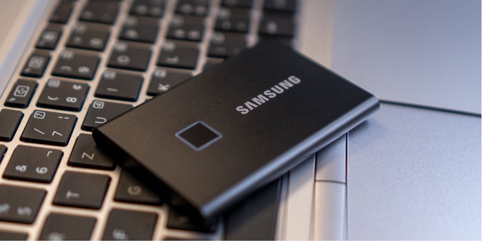 Mit der T7 Touch führt Samsung die T-Serie tragbarer SSDs weiter. Dank USB 3.2 Gen 2 sind hohe Lese- und Schreibraten möglich. Im Vergleich zum Vorgänger T5 gibt’s einen Fingerabdruckscanner und eine spezielle Kühllösung.