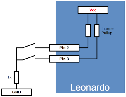 Die elektrischen Verbindungen sind sehr einfach, hier ein Schema für zwei Tasten: