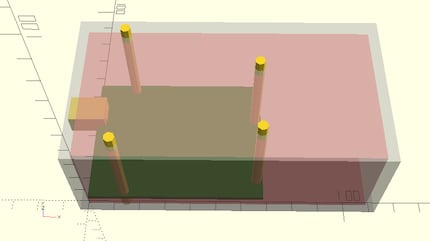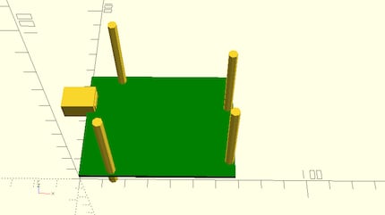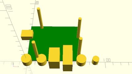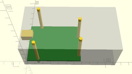 Ich habe ein Modell des Arduinos erstellt, mit den Zylindern für die Schrauben Löcher und dem USB-Anschluss und dem Platzhalter für den Stecker: