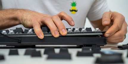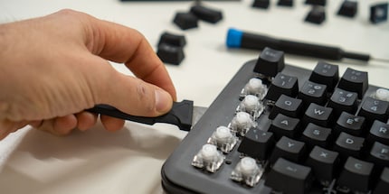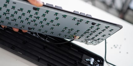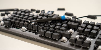 Die Qpad MK-95 ist die erste Tastatur mit umschaltbaren Switches. Indem ich den Hebel umlege, entscheide ich, ob ich auf Clicky oder linearen Switches tippe. Ich nehme den Schraubenzieher in die Hand und zerlege das Teil in seine Einzelteile, um herauszufinden, wie das funktioniert.