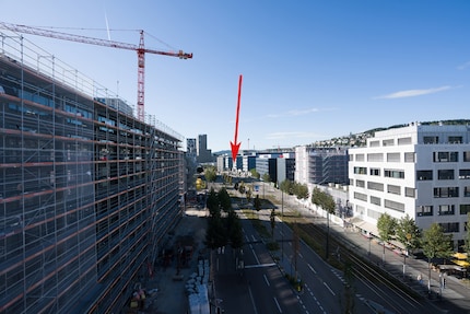 Zur Illustration: Da, wo der Pfeil ist auf dem Bild, sehe ich in der Vergrösserung problemlos, ob die Ampeln auf Rot oder Grün stehen.