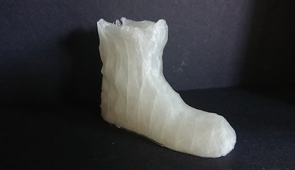 Gedruckt mit transparentem Filament im Ultimaker 3 ohne den Sockel.Der einfarbige Druck aus dem aktuellen Königsmodell der 3D-Drucker, dem Ultimaker 3, zeigt: Das Endresultat ist ohne die Farben nicht berauschend. Falls du auf Full Color Sandstone zurückgreifst, die gebräuchlichste Option für den kommerziellen Farbdruck, wird dein Objekt sehr fragil sein und einen sandigen Finish haben. Nicht ideal für Prototypen und fürs Handling generell.