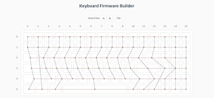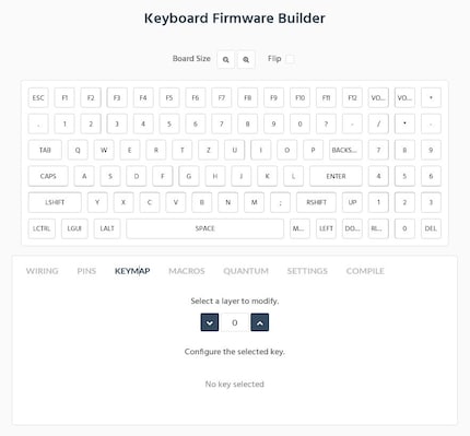 Ist das Layout erstellt, importiere ich dieses in den Keyboard Firmware Builder. Dank dem Layout Editor weiss der Builder genau, wie meine Tastatur aufgebaut ist und ich kann den Tasten Funktionen zuweisen. Bevor es aber soweit ist, muss ich noch die Verdrahtung überprüfen und die Pins zuweisen.