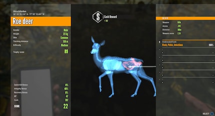 Da ich das Spiel bereits angespielt habe, erkläre ich Dres kurz die Grundzüge. Im Prinzip geht es darum, möglichst viele Tiere zu erlegen. Jeder erfolgreiche Abschuss wird gewertet und mit Erfahrungspunkten belohnt. Dabei zählt auch das richtige Vorgehen und wo man das Tier getroffen hat. «Perfekt ist ein Blattschuss, also durchs Herz», klärt mich der Jäger auf. «Wieso nicht auf den Kopf?, frag ich. «Das wäre ja auch tödlich.» «Das ist unethisch. So was ist unter Jägern verpönt», meint Dres entschieden. Ich entscheide mich, ihm nicht zu erzählen, wie meine erste virtuelle Jagd endete. Als Videospielveteran ziele ich halt immer auf den Kopf. Weil «Boom! Headshot!» hat sich in meinem Kopf eingebrannt.