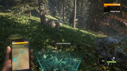 Neben Spuren, die ihr am Boden entdeckt und die euch eine ungefähre Richtungsangabe geben, vernehmt ihr auch die Rufe des Beutetiers. Mal sind das Brunftschreie, mal Warnrufe. Als wir zum wiederholten Male einen Rotfuchs bellen hören, meint Dres allerdings, dass das niemals so oft vorkommen würde. Irgendwo muss das Spiel eben Kompromisse machen zwischen Realismus und Spielspass. Sonst würden wir noch stundenlang ziellos im Wald herumirren.