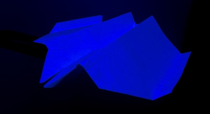 Sowohl im Papier als auch in hellem Stoff befinden sich Bleichmittel, auch optische Aufheller genannt. Es sind diese Aufheller, die das Material zum Leuchten bringen.
