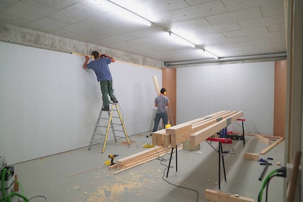 Gemeinsam mit Andrin macht Manuel sich an die detaillierte Planung. Sie erstellen Skizzen, sprechen sich mit der Geschäftsleitung ab, erstellen ein Budget und Equipment-Listen, fordern Offerten von Schreinern, Malern und Lichttechnikern an und installieren während eineinhalb Tagen das ganze Equipment.