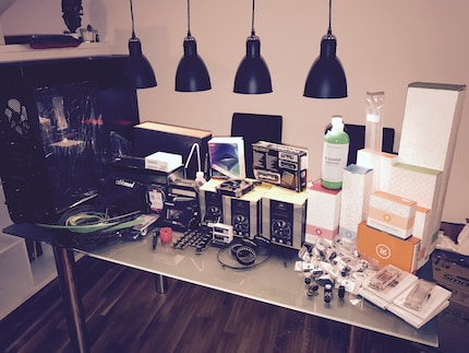 Was es alles braucht, um einen solchen PC zu bauen, findet ihr im obigen Bild schön aufgereiht auf meinem Tisch. Bevor ihr euch an ein solches Projekt wagt, ist eine genaue Planung das Wichtigste. Die Wahl der Komponenten muss wohldurchdacht sein, denn eine Wasserkühlung besteht aus unzähligen kleinen Einzelteilen. Wenn nur etwas fehlt, ist man bereits aufgeschmissen.