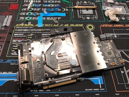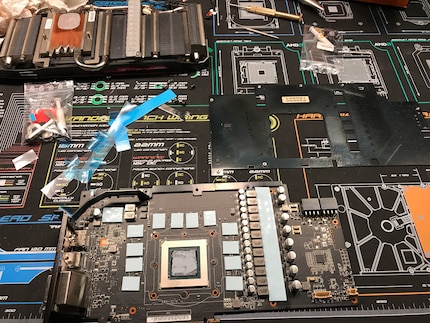 Als nächstes kommt die GPU an die Reihe. Nebst der CPU macht das wohl am meisten Sinn, sind doch die Grafikkarten sehr grosse Hitzequellen. Hier ist äusserste Vorsicht geboten, sboald ihr den Kühler von der Grafikkarte abmontiert, da oft noch kleine Kabel dran hängen.