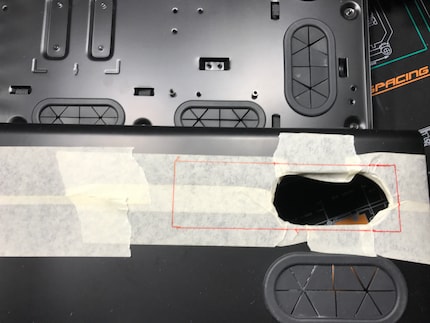 Alle anzeigenEs gibt zwei Umbaumassnahmen, die ich am Gehäuse machen muss. Oben die Vorlage auf der Netzteilabdeckung, bei welcher nachher die Aquaero-Steuerung reinkommt. Das zweite Loch, welches geflext werden muss, ist dann rein für die Optik. Mal schauen, ob ihr am Schluss rausfindet, wo an meinem Enthoo Primo das zweite Loch herausgeschnitten wurde. Wer's findet, darf's gerne in die Kommentare schreiben. Unter allen richtigen Antworten gibt's dann nämlich auch was zu gewinnen. Mehr Infos hierzu erfahrt ihr am Schluss des Blogs.