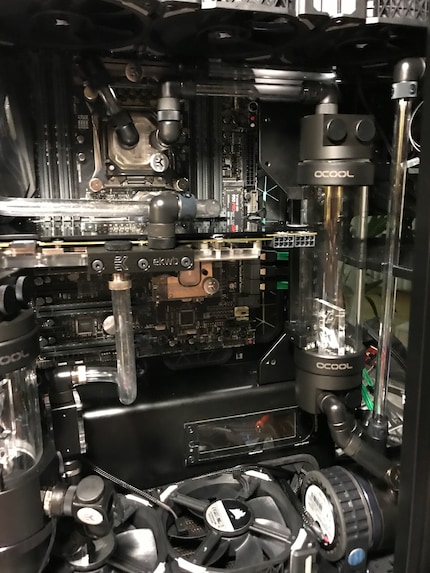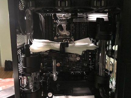 Voilà, es ist vollbracht. Ach ja, die Grösse des Loops habe ich auch unterschätzt. Für den grossen mit dem 480mm Radiator reichte ein Liter Flüssigkeit leider nicht. Somit musste ich noch einen nachbestellen – die Warterei hat mich fast gekillt.