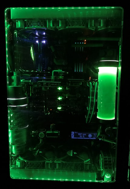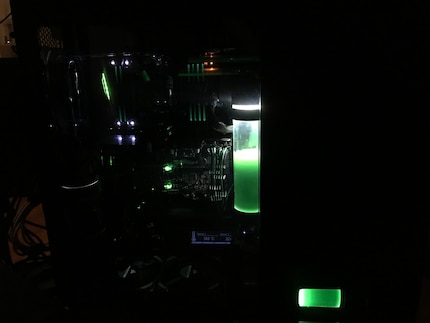 Der grüne Loop ist nun auch voll befüllt mit dem Thermaltake Opaque C1000 und die LED-Streifen sind angeschlossen. Meine Work- und Gaming-Station steht und ich bin happy. Der PC ist ruhig und kühl. Auch im Sommer kommt meine Grafikkarte nicht über 50 Grad. Gezockt wird auf einem ROG 2K Monitor mit höchsten Details. Im Office-Betrieb bleibt die CPU bei kühlen 30 Grad – ein äusserst solider Wert bei einem 8-Kerner.