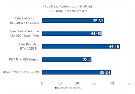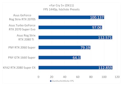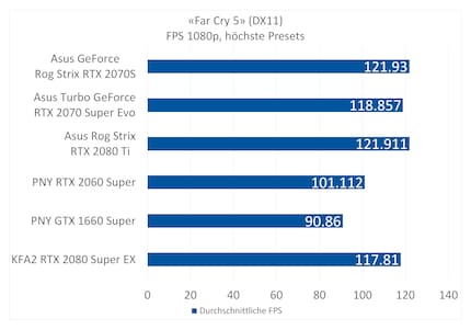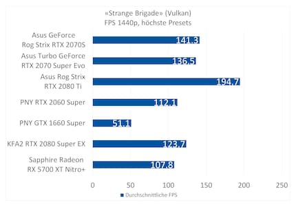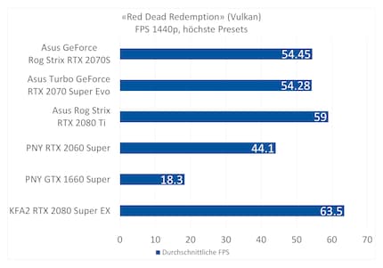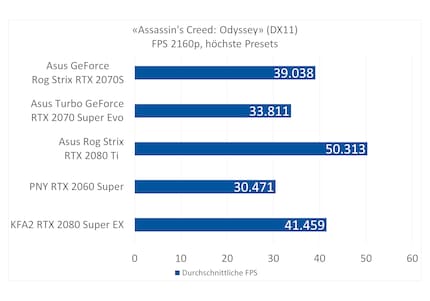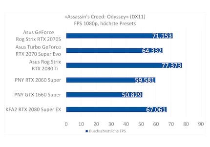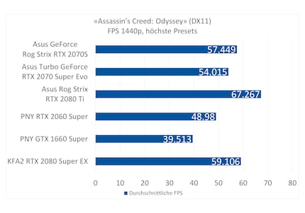 Die Strix schlägt sich bei allen Games besser als die Turbo. Die Unterschiede reichen von kaum vorhanden – nicht einmal ein FPS Unterschied bei «Red Dead Redemption 2» in 1440p bis elf Prozent – «Assassin’s Creed: Odyssey» in 1080p. Durchschnittlich liegt der Unterschied zwischen den beiden Karten bei etwa drei Prozent.