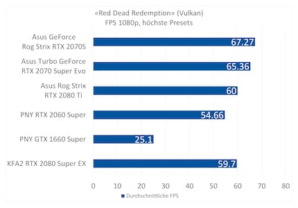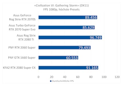 An den Resultaten der Referenz-Workstation lässt sich abschätzen, wie gut andere Systeme abschneiden. Unsere Testbench mit den beiden GeForce RTX 2070 Super erreicht folgende Resultate: