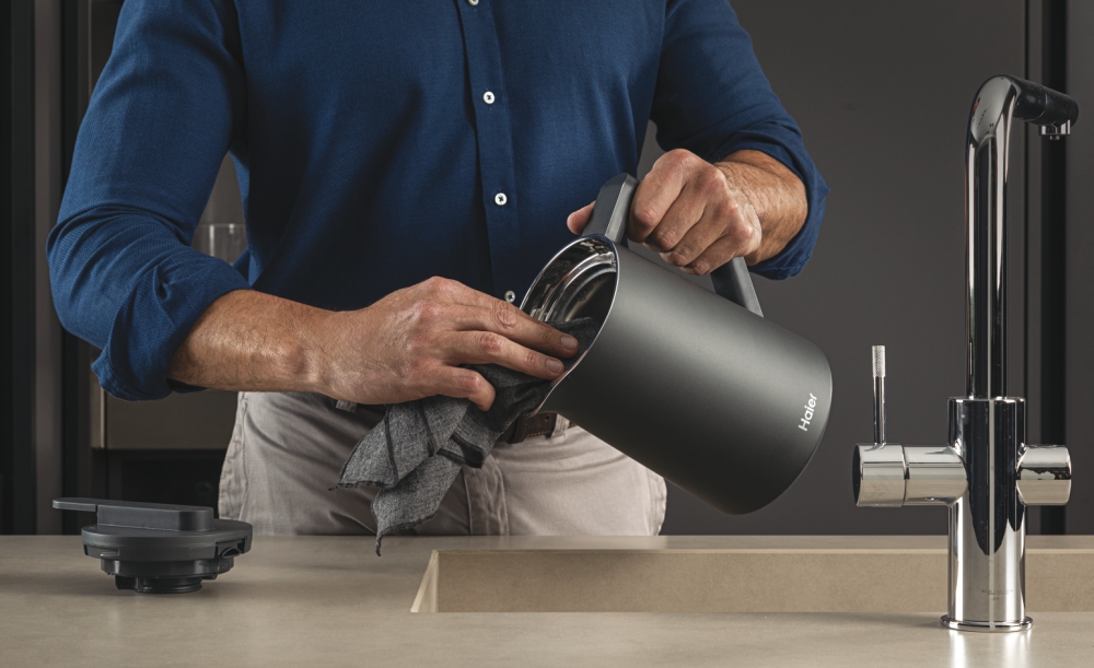 Haier HKE7W 011. Fassungsvermögen Wassertank: 1,3 l. Leistung: 2200 W. Produktfarbe: Grau, Gehäusematerial: Kunststoff, Regelbare Temperatur, Wasserstandsanzeige, Warmhaltefunktion, Filterung.
