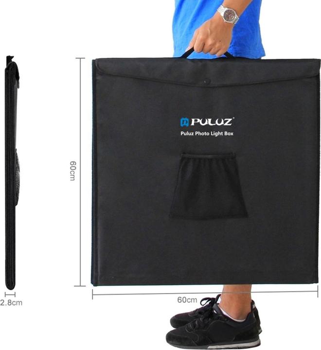 Das Lichtzelt ist schnell und einfach aufgebaut und sofort einsatzbereit, nach Gebrach können Sie es schnell wieder zu einem handlichem Mass zusammenfalten. Schliessen Sie das Netzkabel an einer Steckdose an, wählen Sie den idealen Hintergrund aus, stellen SIe ihren Gegenstand in die Foto-Box und schon können Sie losknipsen. Die LEDs können in der Helligkeit verstellt werden. Im Lieferumfang ebenfalls enthalten ist eine Aufbewahrungstasche, so können Sie das Lichtzelt sicher aufbewahren und einfach transportieren.