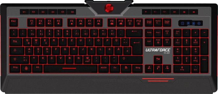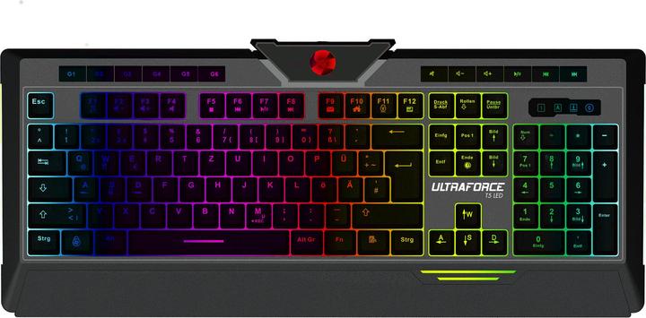 Das Ultraforce T5 LED Gaming Keyboard kombiniert intelligente Gaming-Technik mit puristischem Design und einfachem Handling. Die siebenfarbige, in zwei Stufen dimmbare LED-Beleuchtung und die integrierte Handballenauflage lassen dich auch bei längeren Gaming-Sessions nicht im Stich. Die Live-Makro-Aufnahme ermöglicht es dir, jederzeit die integrierten 6 Gaming-Tasten ganz nach deinen Bedürfnissen anzupassen und verleiht dir so im Spiel einen Vorteil. Im Gaming-Modus ist es dir möglich, 26 essenzielle Tasten gleichzeitig zu drücken, ohne dass einer dieser Befehle untergeht.