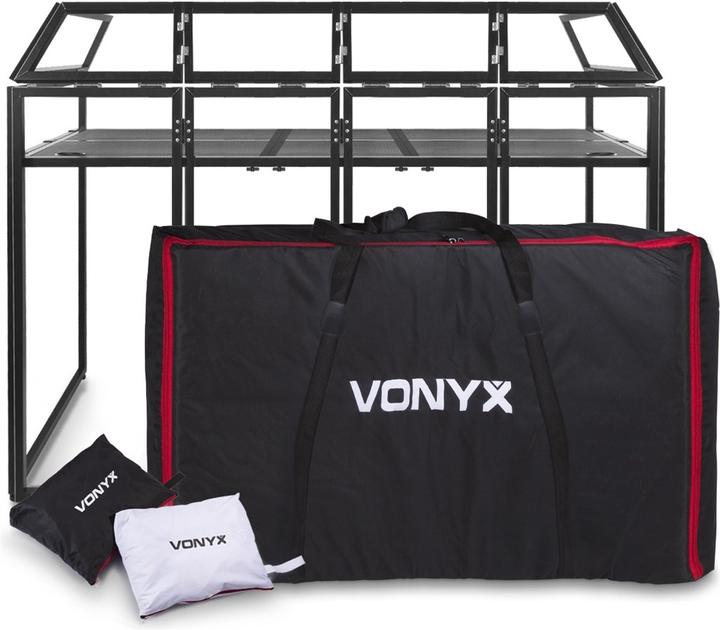 Vonyx DJ Booth DB5 ist eine 6-seitige faltbare DJ-Bühne mit einem leichten Aluminiumrahmen. Sie ermöglicht eine einfache und schnelle Montage und kann mit einem Lichteffekt hinterleuchtet werden. Die Bühne zeichnet sich durch ein robustes Material und Design aus, beinhaltet ein Metalltablett und wird mit weissen und schwarzen Lycra-Bezügen geliefert. Eine Tragetasche ist ebenfalls enthalten.