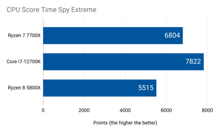 The 7700X scored six per cent higher than Intel. Compared to its indirect predecessor, there’s a 15.5 per cent increase.