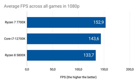 AMD has reclaimed the performance crown from Intel with its Ryzen 7000 processors. True, the 7700X can’t beat Intel’s prized Core i7-12700K in every category due to having fewer threads. In 1080p gaming, however, it does lead by 6.5 per cent. It also achieves the same feat in comparison to Intel’s top CPU, the 12900K – but «only» by 2.5 per cent. But for how long is the question? Intel will also be bringing out new CPUs next month.