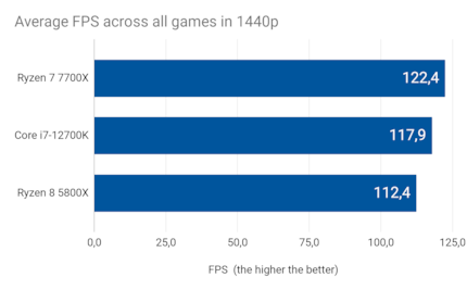 Another extremely tight race between Intel and AMD. The 7700X beat the 12700K by just 0.5 per cent.