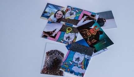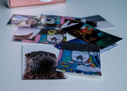 The Zink paper has particular problems with grey and white tones. No jumper is as white as Stephanie's, especially as it's actually light grey. In another photo, the table under the a7iii isn't really as reddish as it looks. The far end of the table where the camera is does look a bit red when I look closely, but not to this extent. Zink handles green very well, however. The photo of the young woman with the rabbit mask on her rucksack looks great. But as I remember the spontaneous shoot in Vienna, I was looking for a slightly shabby, rough look with highly charged colours and contrast. A 1990s punk zine aesthetic. Our stock otter friend looks fine, except that he seems to have dreadlocks rather than individual hairs. The hairs combine to form patches of colour which look more like a photo with high contrast than a photo of the creature. Colour control and nuances in the image are definitely not the Zoemini's strengths, even though this Zink stuff is fascinating from a technical point of view.