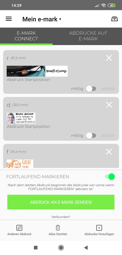I would love to try a second time. Unfortunately, all my attempts fail. It no longer works to make several different impressions at once. I try to send the imprints again. But either the connection to Vader is lost or the app crashes. What's more, the print quality has deteriorated after all the prints and I have to clean the print head again. Vader is really no fun like this. That's why I'm still trying the Windows software.
