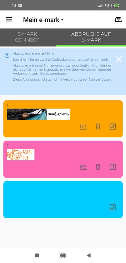 First contact with the Colop e-mark is anything but pleasant due to the annoying noises - unless you're a droidophile. Fortunately, the beeping can be switched off. But more on that later.