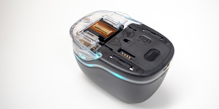 The device weighs around 225 grams, is eleven centimetres long, seven and a half centimetres wide and just over seven centimetres high. The e-mark is powered by a three-cell Li-Ion battery with 600 mAh. According to the data sheet, the device prints at 600 dpi on paper, cardboard, fabric, wood, cork, plasterboard, glossy paper and photo paper.