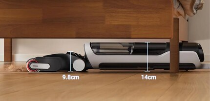 The H14 Pro is the counterpart to the robot hoover, so to speak - but for manual operation. In other words, it vacuums and mops wet, but you have to push and navigate it yourself. The big innovation with the new model is that you can fold the wet and dry vacuum cleaner flat and lay it on the floor. The water tanks are designed so that no water leaks out.