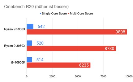 Regarding the competition: The Ryzen 9 5950X is basically unrivalled. Intel has nothing comparable to offer in its current line-up: Intel's flagship, the Intel i9-10900K, only has 10 cores and 20 threads.
