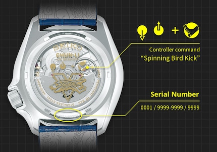 On the back of the watch, they’ve put the combo for Chun Li's iconic Spinning Bird Kick: Up, Down, Kick. In addition to this, there’s the number of the watch, given each model is limited to 9,999 pieces