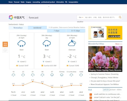 Ah and one last thing. Dear members of the Chinese meteorological administration, your weather forecasts are pretty reliable. But your geographical knowledge is appalling. Vaduz isn't in Switzerland, it's the capital of a completely different country. Vaduz is the residence of Crown Prince Regent Alois von und zu Liechtenstein, Count of Rietberg, in office since 2004, representing his father Johannes Adam Ferdinand Alois Josef Maria Marco d'Aviano Pius Prince von und zu Liechtenstein, Duke of Troppau and Jägerndorf, Count of Rietberg, Governor of the House of Liechtenstein.
