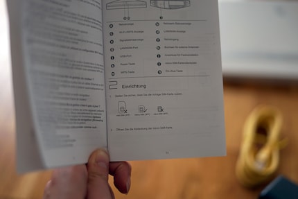 The guide takes you through the installation process step by step. First, the booklet tells me to use the correct SIM card format. So far, so good. Then, what a surprise, I need to insert the SIM into the SIM slot. This also works flawlessly. Then the router has to be plugged into the power supply.