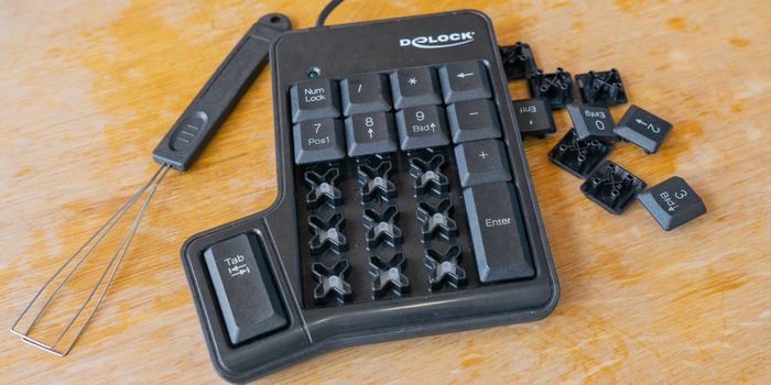 So our product description wasn't correct. We've already corrected that. Thanks to user 149toshiro, for racking his brains and doing his research before buying. This allows us to improve and provide you with the correct information. Twenty francs for a numeric keypad with mechanical switches is really very cheap, unless you're buying something made in China that's even cheaper. The Delock keypad is cheap from design to purchase. If you want to buy a number pad with mechanical keys from us, you only have one option, but this pad also comes with a controller, so your computer registers the signal correctly from the start.