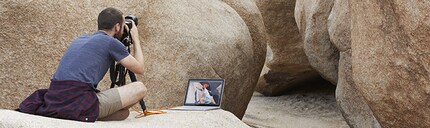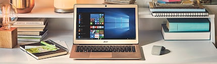 Streaming series, gaming with refined graphics, enjoying animated 3D designs: Screen quality is more important than ever for today's private users. If you think all movies you're watching take place in foggy weather, think again: It could be your display. If you're going for a new device, make sure it features IPS or HDR – you don't want to end up with a cataract. If you travel a lot, it's also worth considering the option of adapting the display brightness for daylight and backlight. We recommend the Huawei Matebook X Pro with a UHD resolution of 3000 x 2000 pixels and really slim edges or the Dell XPS 13 with a UHD resolution of 3840 x 2160 pixels. A notebook with touch screen is easier to use on the go because it frees you of a keyboard. Touch-enabled software that's intuitive and runs smoothly makes working on the go even more enjoyable. Office 365 Home is a great example for this. Speaking of image quality: Your webcam should also be able to display your video without making you look like a game character from the 80s. Retro is cool, but only in moderation. To make sure you don't get annoyed like a customer about «a pixelated picture that I classify as absolutely useless», we recommend the Surface Go with its high-resolution webcam or the Acer Swift 5.