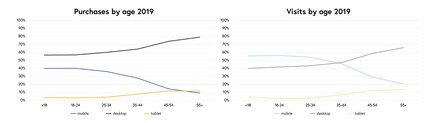 The differences in user behaviour are also striking when comparing age groups: customers under 35 years of age now visit digitec and Galaxus more often from their mobile phones than from their computers. In the age group of 55+ years, however, every seventh visit originates from a tablet – and eight out of ten from a PC. The overall conclusion is: the older an online shopper, the more likely he or she is to use a computer and/or tablet to browse and make purchases.