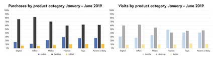 The differences seen in mobile shopping by age group and by sex are also reflected in user behaviour by product category: the largest share of visits and orders made from a PC can be seen in the three product categories «Digital», «Office» und «Media» – the categories «Fashion», «Toys» und «Parents + Baby» show the largest mobile share. «Fashion» is so far the only product category of Digitec Galaxus with a higher proportion of mobile visits than desktop visits.