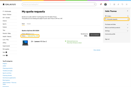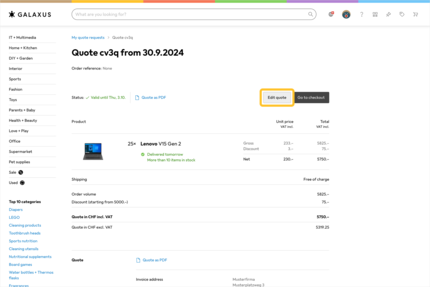 Until now, business customers could only request quotes from Digitec Galaxus via e-mail – a manual, time-consuming process. Now, the days of long Excel documents, shopping cart screenshots, and endless e-mail ping-pong are over. From now on, we offer a new, smart solution: you can now get a quote for anything your company may need directly through the online shop.