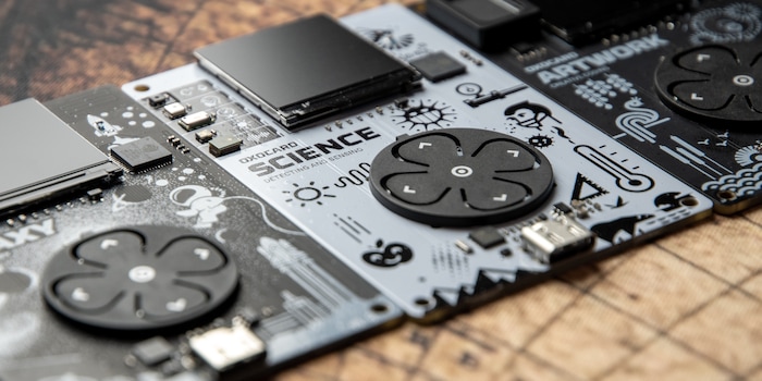 One of the three cards, the Oxocard Science, features numerous other sensors. You can measure temperature, air pressure, humidity, CO2 content, light and infrared intensity, sound level and dominant sound frequency.