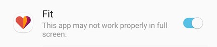 Fortunately, Samsung did think of all the small app developers, which might not have the capacity to adapt to this change very quickly, by adding a button. Go to settings and display settings and you will find “Full Screen Apps”. This forces the app to adapt to the aspect ratio. It seems that this button distorts the app’s main frame so it can display more content.