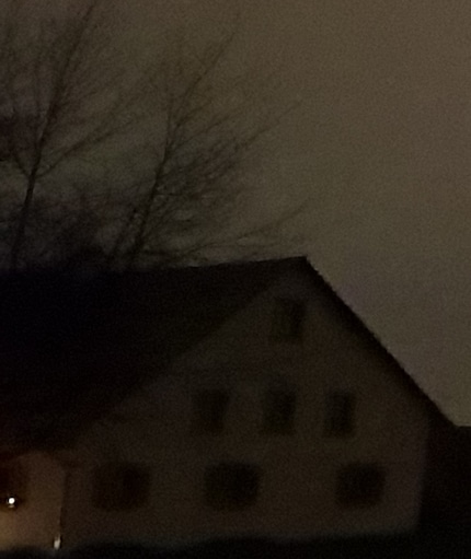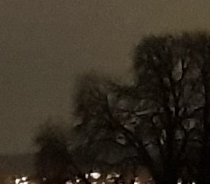 The trees on the hill are hit even harderIt seems as though the camera software uses an intelligent soft focus filter to edit image noise – something you notice on a lot of phones when you’re shooting in the dark. That’s what causes these jagged edges and rough lines. However, the camera doesn’t manage to eliminate the noise entirely. In the picture above, you can still see a lot of interference in the sky.