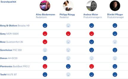 Interestingly, our testers dethroned the «king of the silence», the QC35. It looks like the other manufacturers have caught up when it comes to noise-cancelling technology. Sony’s calibration function for background noise seems to be especially effective.