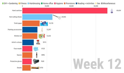 Mid-April sees sneeze guards sweep the nation. They prove particularly popular with companies whose employees can’t work from home. Hair salons are given the green light to reopen on 27 April. The demand for hair-cutting scissors screeches to a halt.
