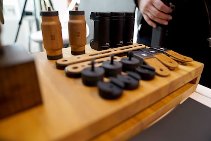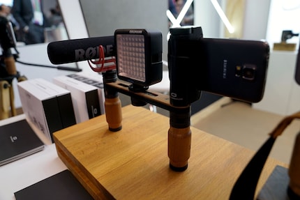 It's clear that Stephanie has to take a break. She loves the wooden and black metal parts. They come in all sizes, from a single smartphone holder to a two-handed rig with smartphone, light and external Rode Videomic. The video producer, who films mainly with Sony a7s ii and rarely with Samsung Galaxy S8+, of course has to see this.