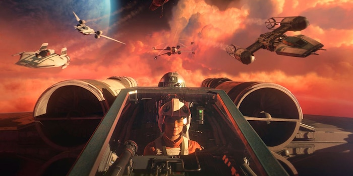 Again and again, the trailer shows us two fighter squads belonging to the New Republic and the Empire respectively, each consisting of five pilots. We don't know whether you'll have to choose one of the two sides or play through both sides at the same time.